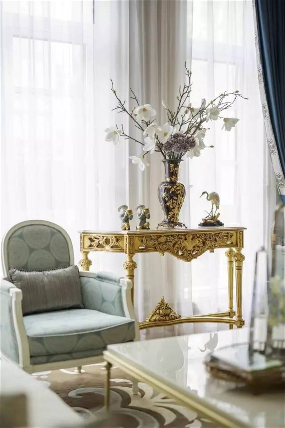 在這個作品中,我們萃取瞭(le)法式新古典建築藝術和美學神韻,並(bìng)對舊傳統做瞭(le)新的嘗試與思考,将法式古典風格的端莊與奢華,與中國當下審美情趣合二爲一,實現古典與現代,傳統與創新的和諧之美。