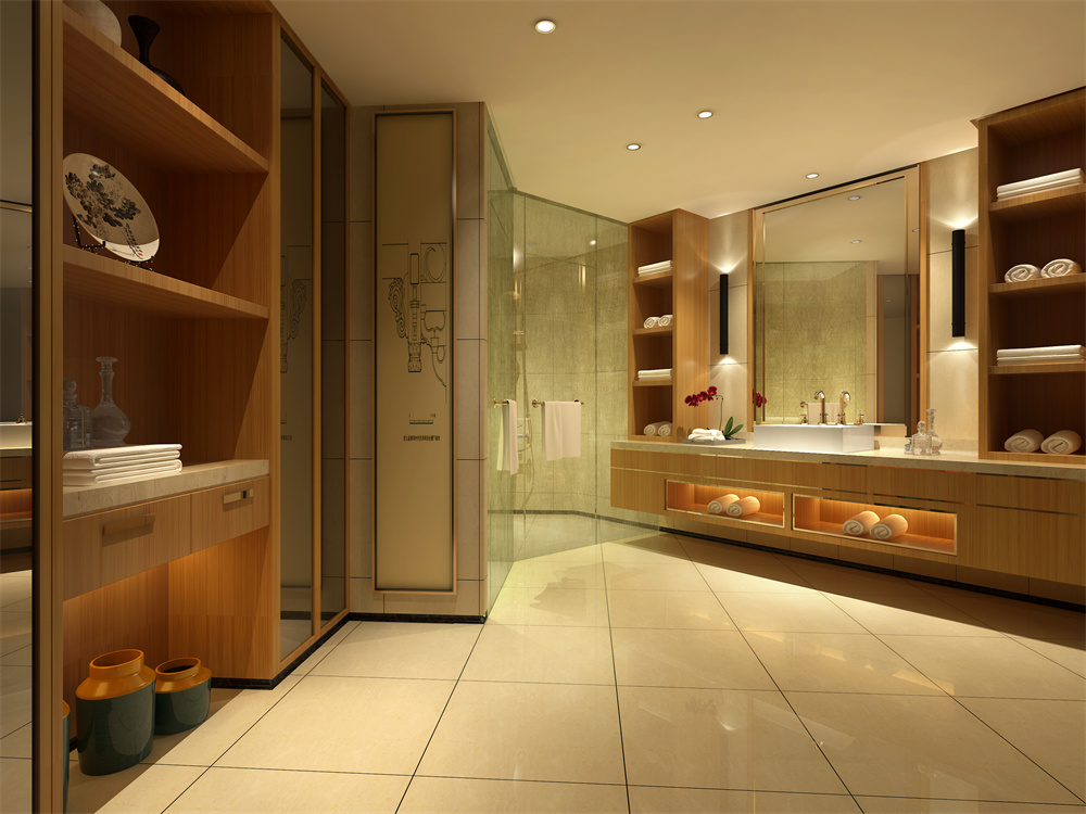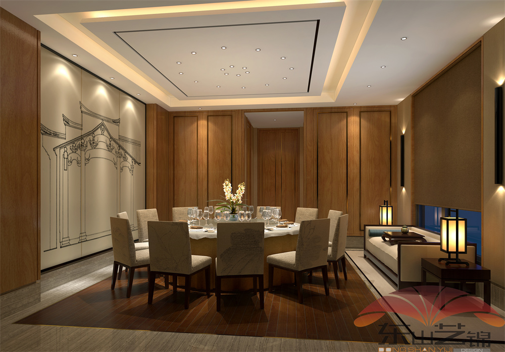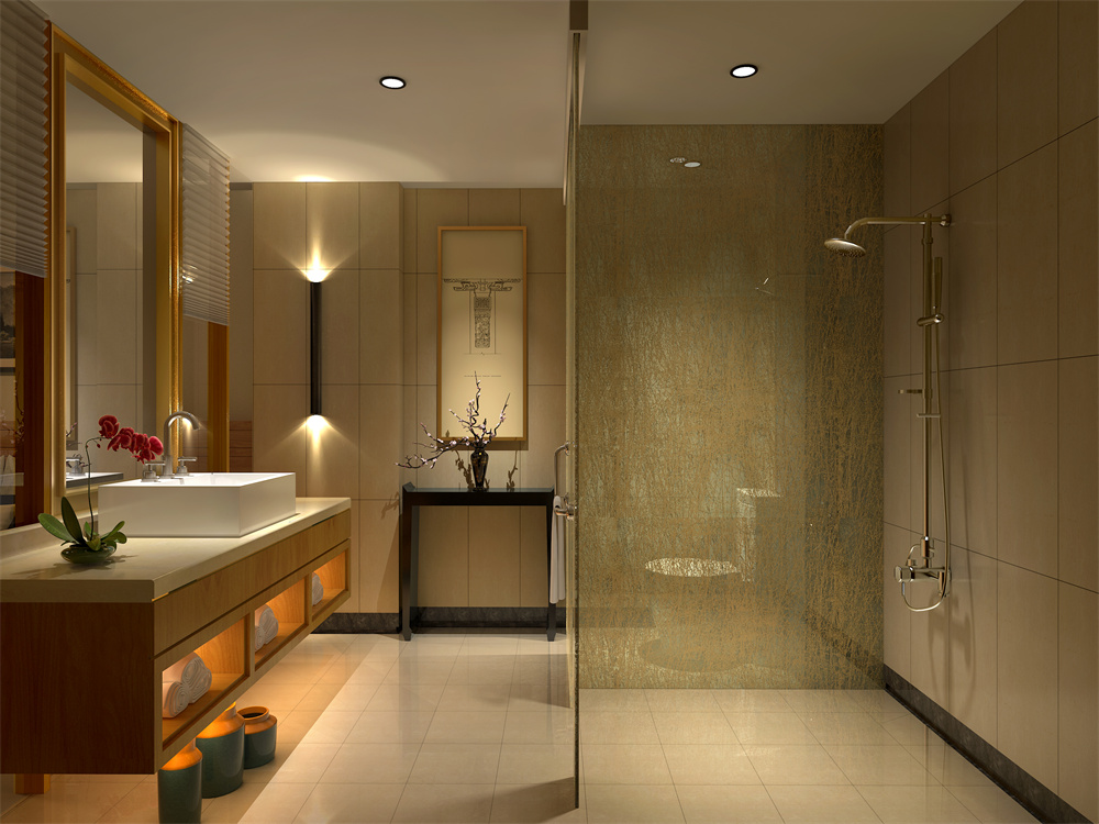 簡潔莊嚴的頂部造型,著力塑造現代、簡潔、大氣的空間感,米黃色牆紙,配以一個更加豐富,室内空間更加流通的設計方案。雍容、沉靜、清靈的氣質,簡約大氣的造型,舒适的功能設計重新诠釋瞭亞洲傳統文化.