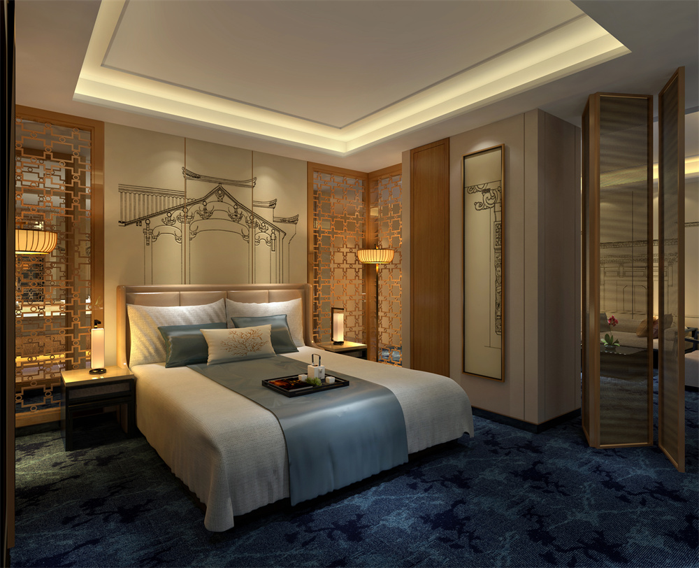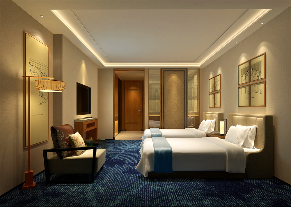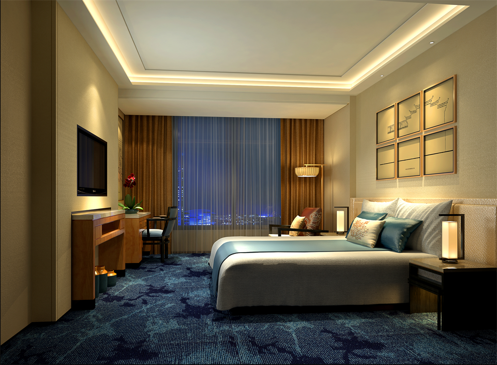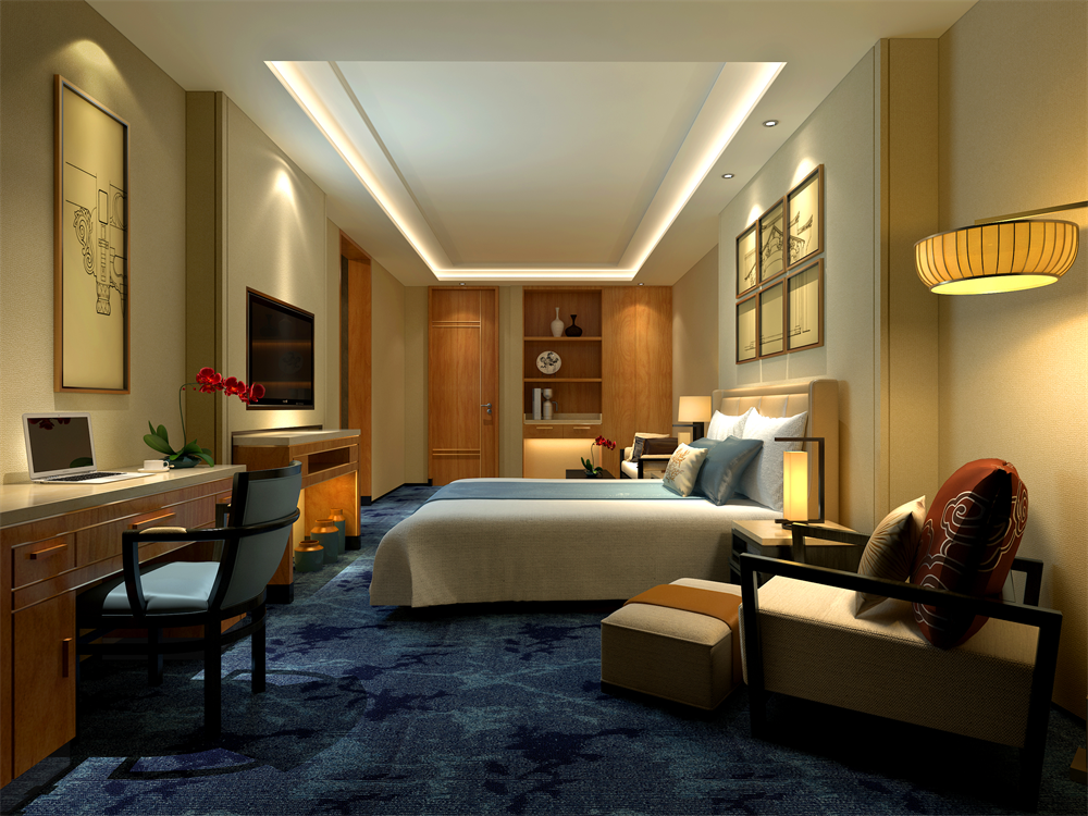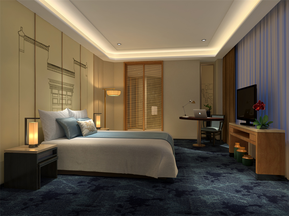客房是客人在酒店内停留時間最長的空間,營造良好客房的氣氛讓酒店的整體配套更加完美,因此在有限的造價約束的前提下,整體設計追求簡潔而時尚,明快的背景色彩與柔和燈光效果的協調則讓客人倍感舒心。在地毯的陪襯下在靜谧中流淌著華麗與舒适,加上悠揚的背景音樂,營造出“家”的感覺。