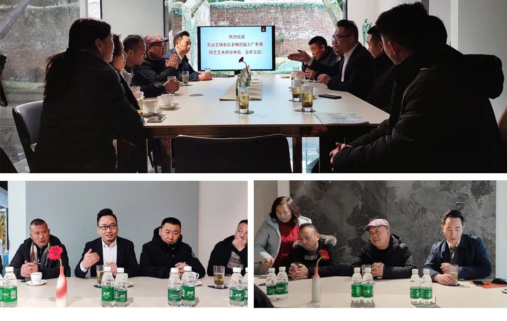 2021年12月28日,東山藝錦裝飾(集團)有限公司(以下簡稱我司)創始人蔣星帶領我司團隊、部分業主到威尼斯商人瓷磚總部進行參(cān)觀、交流,威尼斯商人執行董事徐遠江、副總經理張鑫忠、新西南陶藝文創産業園總經理徐素勤熱情接待並(bìng)出席交流活動。