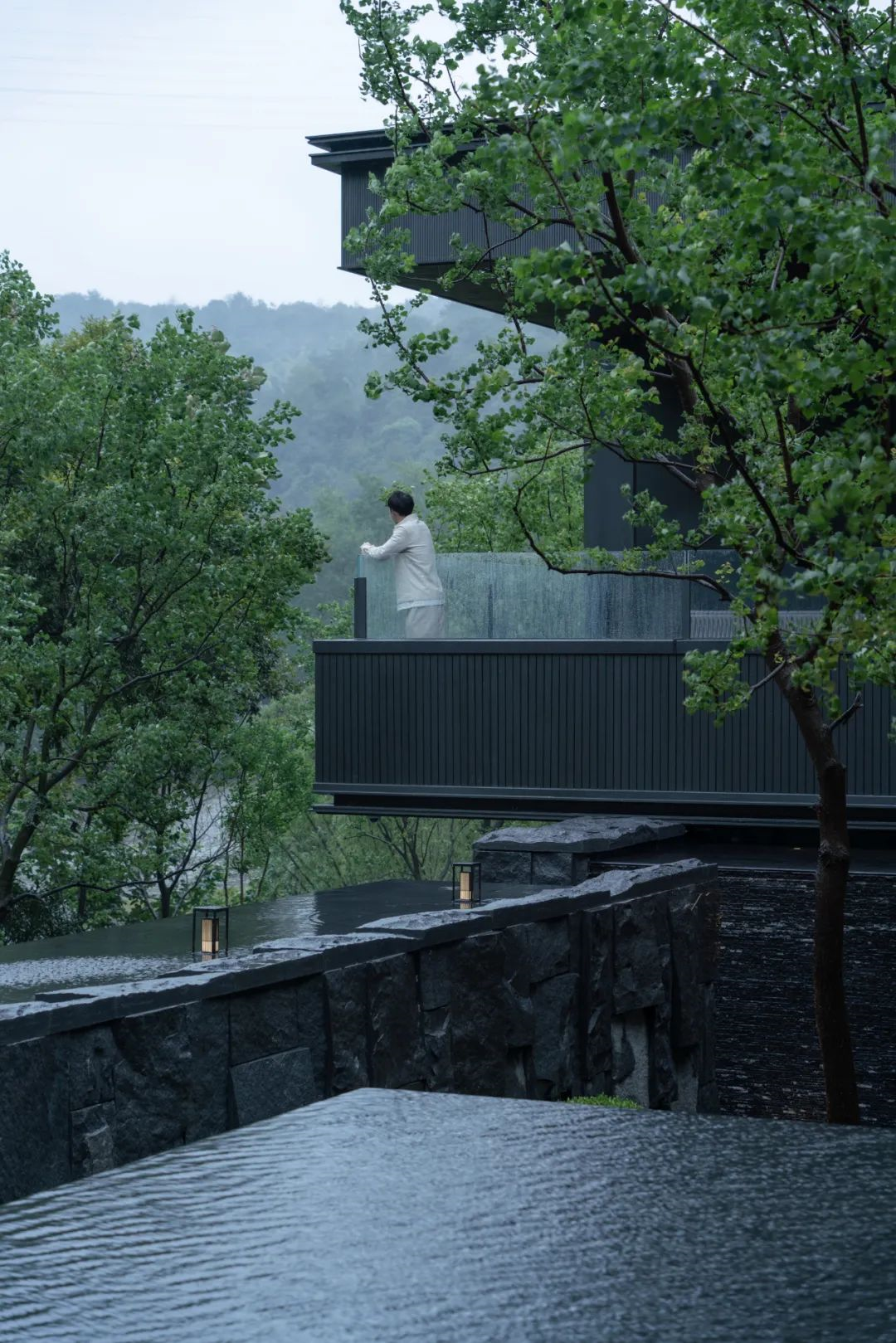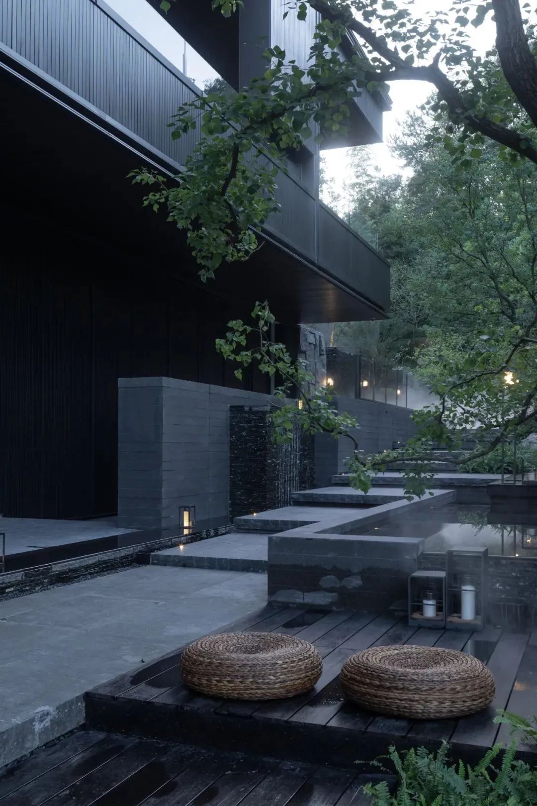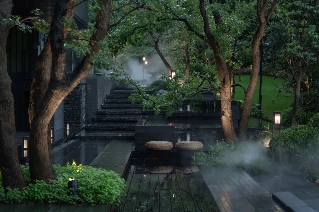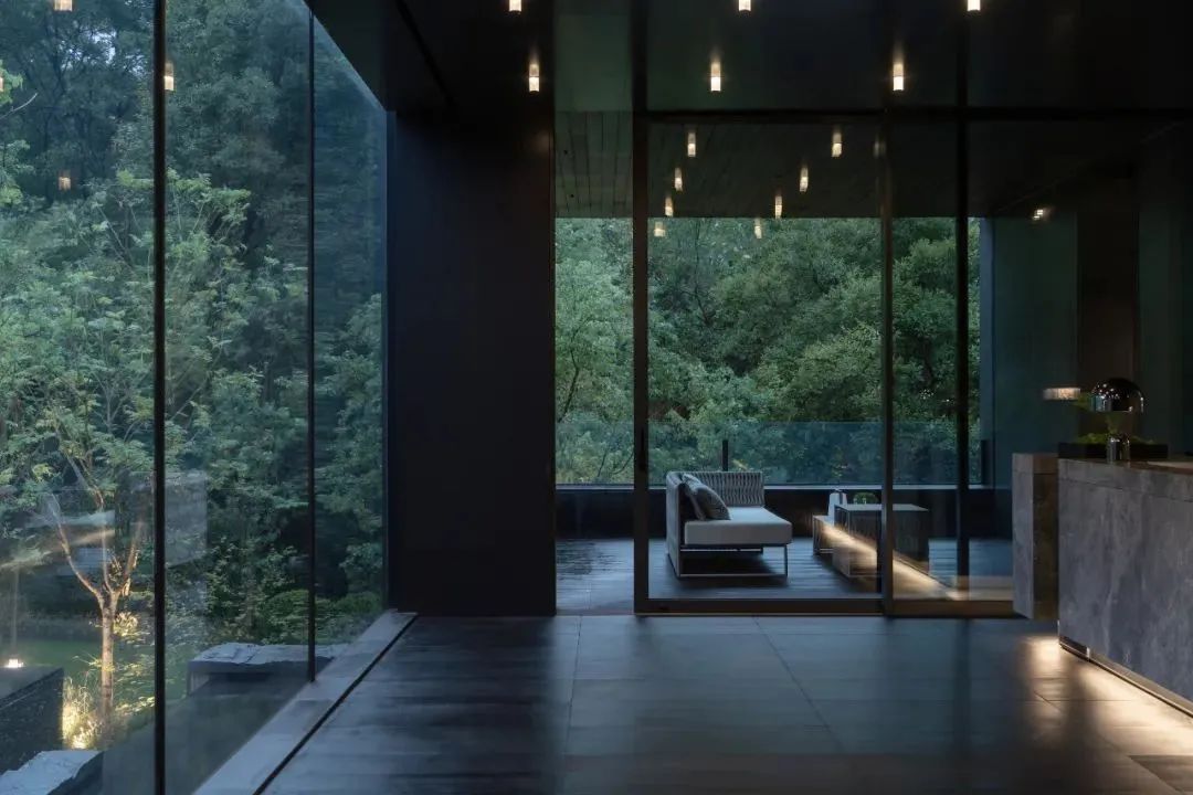 别墅依山而立,三面環水,每個房間都與外界相通,呈現出原生态景觀,夜晚,當(dāng)燈(dēng)光亮起,這裏與大自然一同構造詩意浪漫。