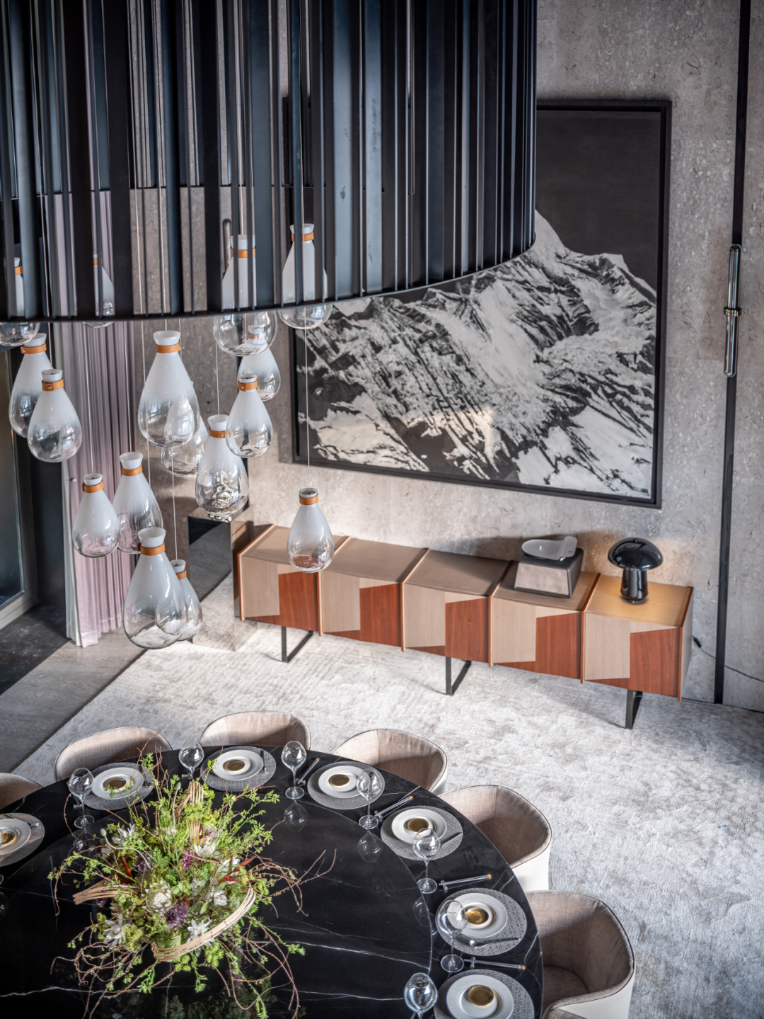 高級(jí)灰與暖木色交織在陽光下,落地窗将樹影婆娑的景象牽入室内,感受一天的時間流逝。茂盛的綠植将室内裝點(diǎn),與室外相得益彰。