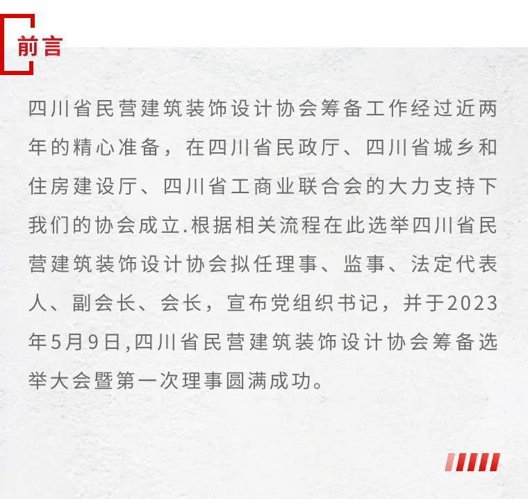 四川省民營建築裝飾設計協會(huì)(籌(chóu))選舉大會(huì)暨第一屆理事會(huì)取得圓滿成功。