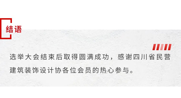 主持人宣布四川省民營建築裝飾設計協會(籌)備選舉大會理事會和監事會成員,當(dāng)選拟任第一屆理事會會長(zhǎng),當(dāng)選拟任第一屆理事會副會長(zhǎng),當(dāng)選拟任第一屆理事會秘書長(zhǎng)當(dāng)選拟任法定代表人,當(dāng)選拟任黨組織書記選舉結果。