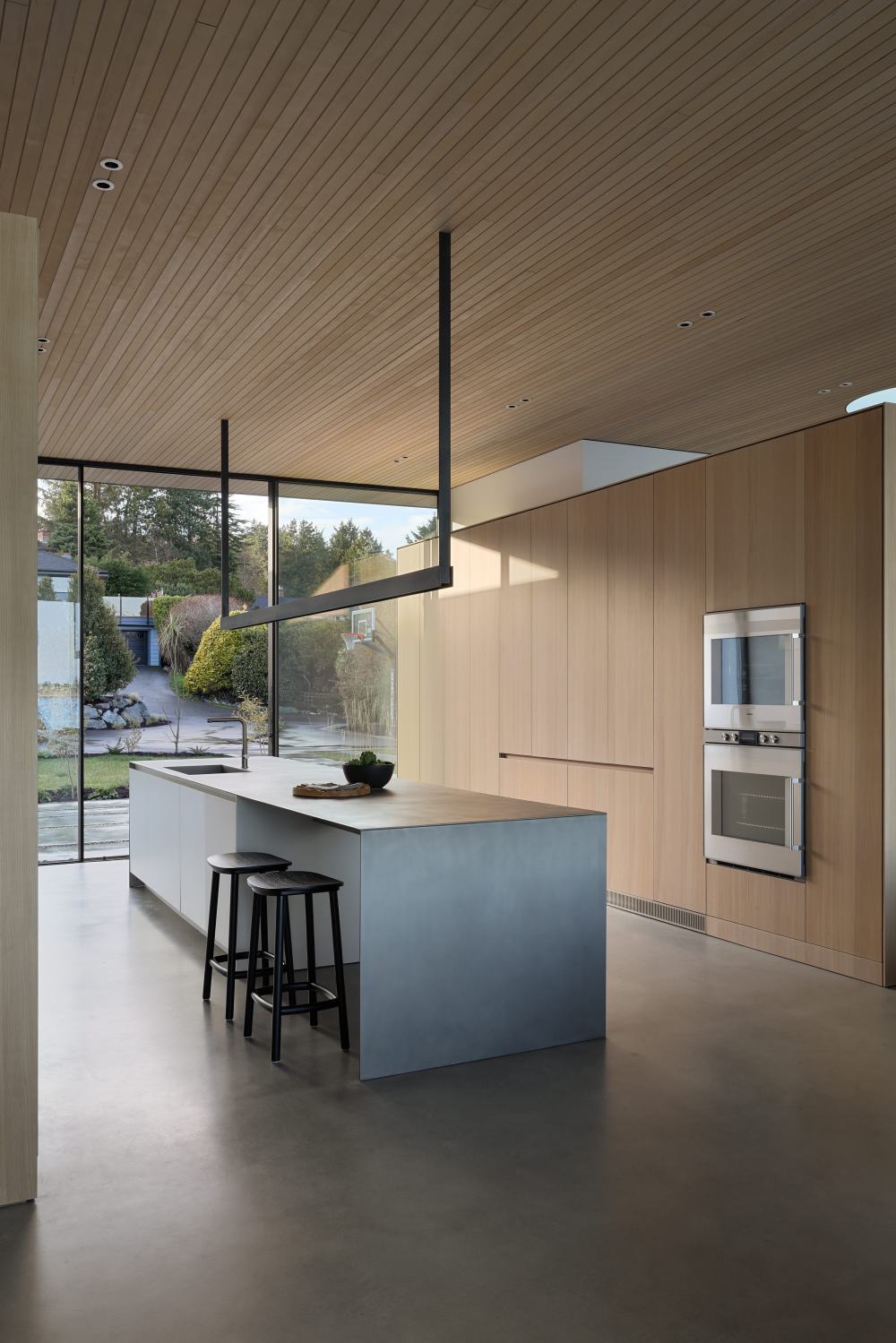 正面巨大的落地窗面對(duì)著(zhe)寬廣的湖面